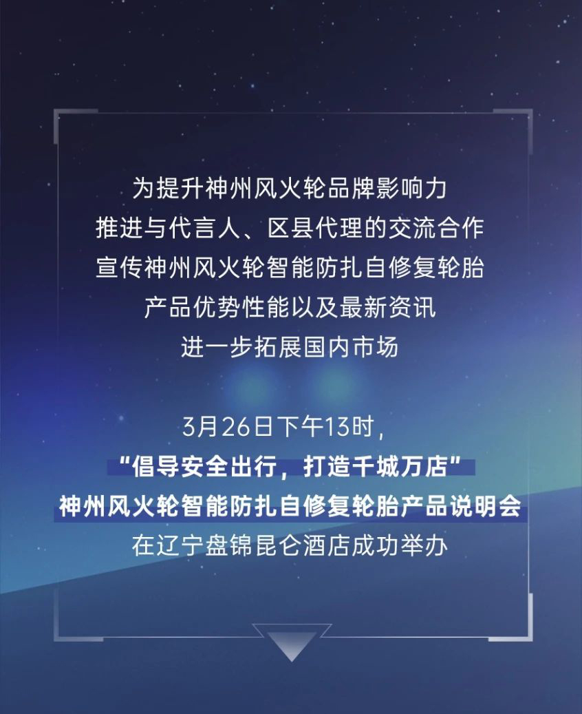 【盤(pán)錦站】“倡導(dǎo)安全出行,打造千城萬(wàn)店”神州風(fēng)火輪智能防扎自修復(fù)輪胎產(chǎn)品說(shuō)明會(huì)